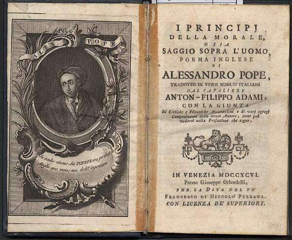 I PRINCIPI DELLA MORALE o sia, saggio sopra l'uomo, poema inglese