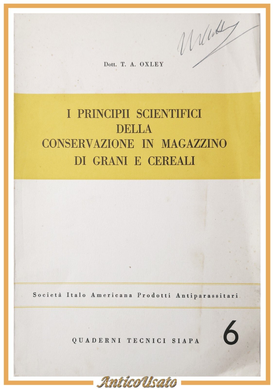 <font rwr="1" size="4" style="font-family:Arial"><h1 style=""><span style="font-weight: normal;"><font face="Georgia" style="" size="5" color="#8a0000">I PRINCIPII SCIENTIFICI DELLA CONSERVAZIONE IN MAGAZZINO DI GRANI E CEREALI di Dott. T. A. Oxley. </font></span></h1><h2 style=""><span style="font-weight: normal;"><font face="Georgia" size="5" color="#8a0000">SIAPA Editore, 1957. Serie Quaderni Tecnici 6.</font></span></h2><font face="Georgia" style="" size="5" color="#8a0000"> 127 pagine, illustrazioni in bianco e nero fuori testo. copertina editoriale in brossura. stato di conservazione: molto buono (pagine normalmente ingiallite, firma di appartenenza)</font></div></font>Libro usato agricoltura parassiti