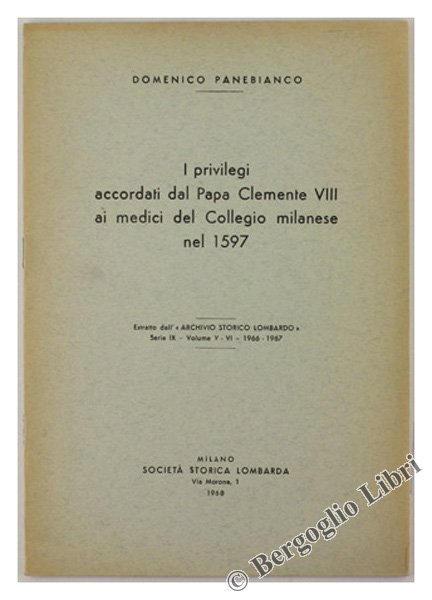 I PRIVILEGI ACCORDATI DAL PAPA CLEMENTE VIII AI MEDICI DEL COLLEGIO MILANESE NEL 1597.