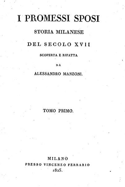 I PROMESSI SPOSI. - Storia milanese del secolo XVII scoperta e rifatta da Alessandro Manzoni.