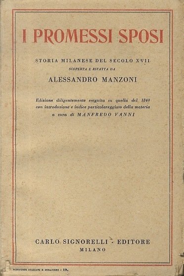 - Scoperta e rifatta da Alessandro Manzoni. Ed. diligentemente eseguita su quella del 1840, con introduzione a cura di Manfredo Vanni.