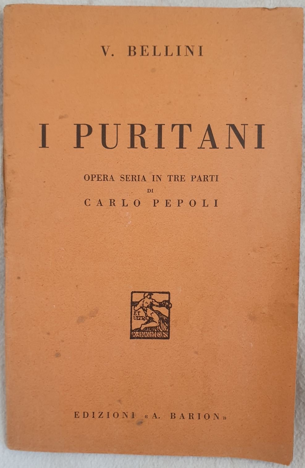 Bel libretto d'opera degli anni '30 di questa opera seria in tre atti di Vincenzo Bellini su libretto di Carlo Pepoli tratto dal dramma storico di Jacques-Francois Ancelot. L'opera venne rappresentata per la prima volta nel 1835 al Theatre Italien. In buone condizioni. Brossura editoriale in buone condizioni generali con lievi usure ai margini e dorso. Legatura in buone condizioni. All'interno le pagine si presentano in ottime condizioni con rare fioriture. In 8. Dim. 18,5x12 cm. Pp. 32.Beautiful booklet of 1930's of the work of this serious book in three acts by Vincenzo Bellini on booklet of Carlo Pepoli taken from the historical drama of Jacques-Francois Ancelot. The work was represented for the first time in 1835 in the Theatre Italien. In good conditions. Editorial cover in good general conditions slightly worn in the edges. Binding in good conditions. Inside pages are in very good conditions with occasional foxings. In 8. Dim. 18,5x12 cm. Pp. 32.