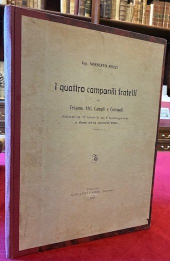 4to (cm. 34), 86 pp., 1 c.nn., II pp. Di Indice. Con 12 tavv. f.t. (di 4 fotografiche). Legatura coeva in mz. tela con cop. anteriore a stampa applicata al piatto anteriore. Invio autografo dell’A. al frontespizio. Esemplare in ottimo stato di conservazione. Raro. Provenienza: Collezione Spina, Avezzano. Cfr. Bindi, p. 401. Non in Pansa né in Zuccarini.