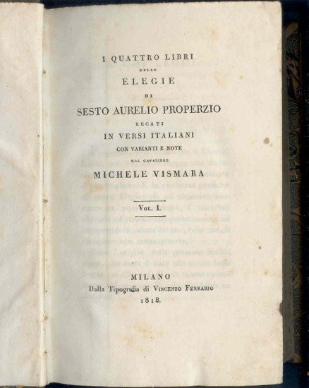 I QUATTRO LIBRI DELLE ELEGIE DI SESTO AURELIO PROPERZIO RECATI IN VERSI ITALIANI CON VARIANTI E NOTE