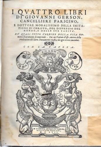 I quattro libri di Giovanni Gerson, Cancelliere parigino, e Dottore Moralissimo della Imitatione di Christo, del Dispregio del Mondo, e delle Sue Vanità. con la Tavola