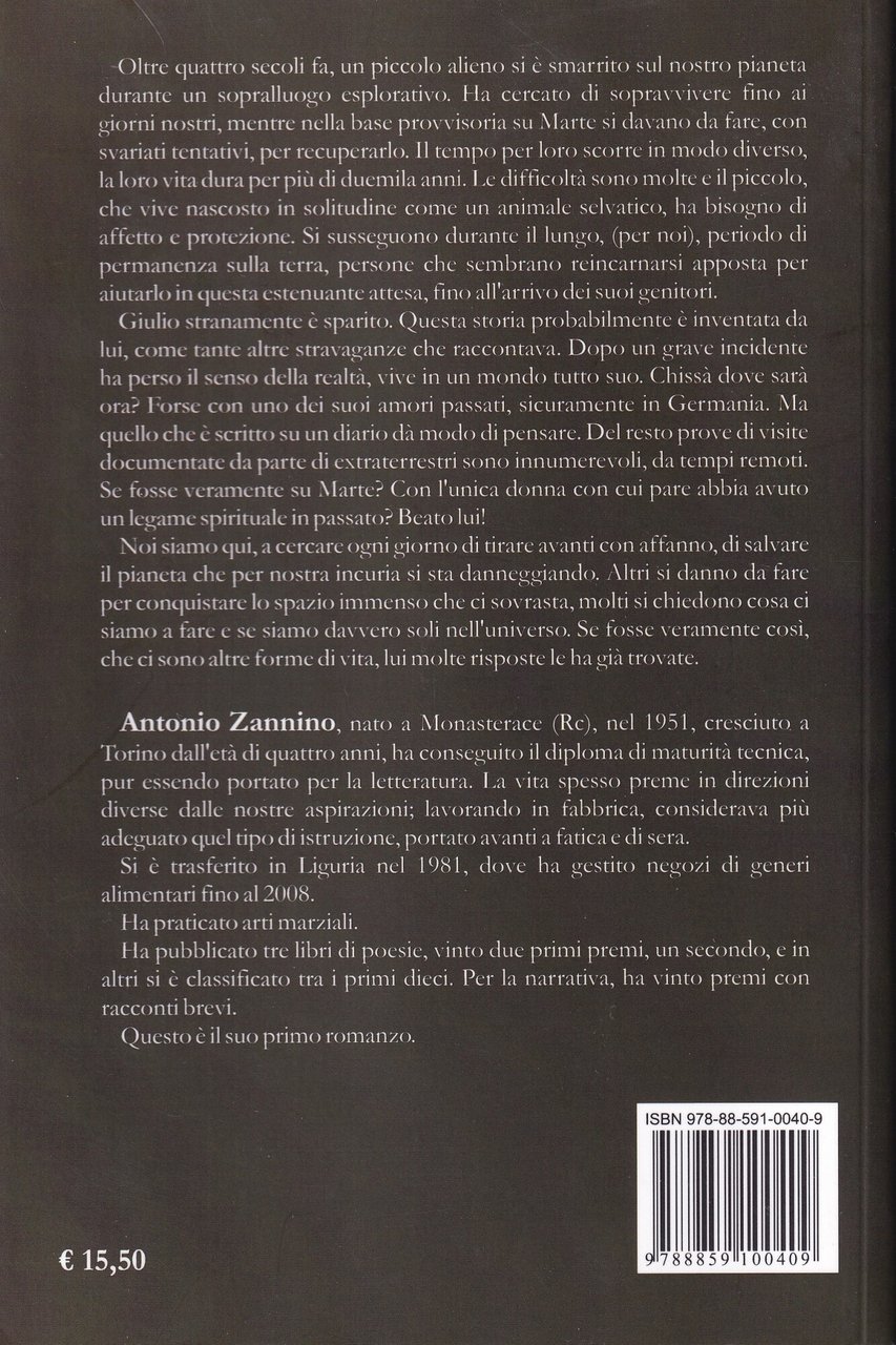 Collana: Gli emersi narrativa I racconti di Giulio: Oltre quattro secoli fa, un piccolo alieno si è smarrito sul nostro pianeta durante un sopralluogo esplorativo. Ha cercato di sopravvivere fino ai giorni nostri, mentre nella base provvisoria su Marte si davano da fare, con svariati tentativi, per recuperarlo. Il tempo per loro scorre in modo diverso, la loro vita dura per più di duemila anni. Le difficoltà sono molte e il piccolo, che vive nascosto in solitudine come un animale selvatico, ha bisogno di affetto e protezione. Si susseguono durante il lungo, (per noi), periodo di permanenza sulla terra, persone che sembrano reincarnarsi apposta per aiutarlo in questa estenuante attesa, fino all'arrivo dei suoi genitori. Giulio stranamente è sparito. Questa storia probabilmente è inventata da lui, come tante altre stravaganze che raccontava. Dopo un grave incidente ha perso il senso della realtà, vive in un mondo tutto suo. Chissà dove sarà ora? Forse con uno dei suoi amori passati, sicuramente in Germania. Ma quello che è scritto su un diario dà modo di pensare. Del resto prove di visite documentate da parte di extraterrestri sono innumerevoli, da tempi remoti. Se fosse veramente su Marte? Buone condizioni generali (si inviano ulteriori foto su richiesta) Come nuovo