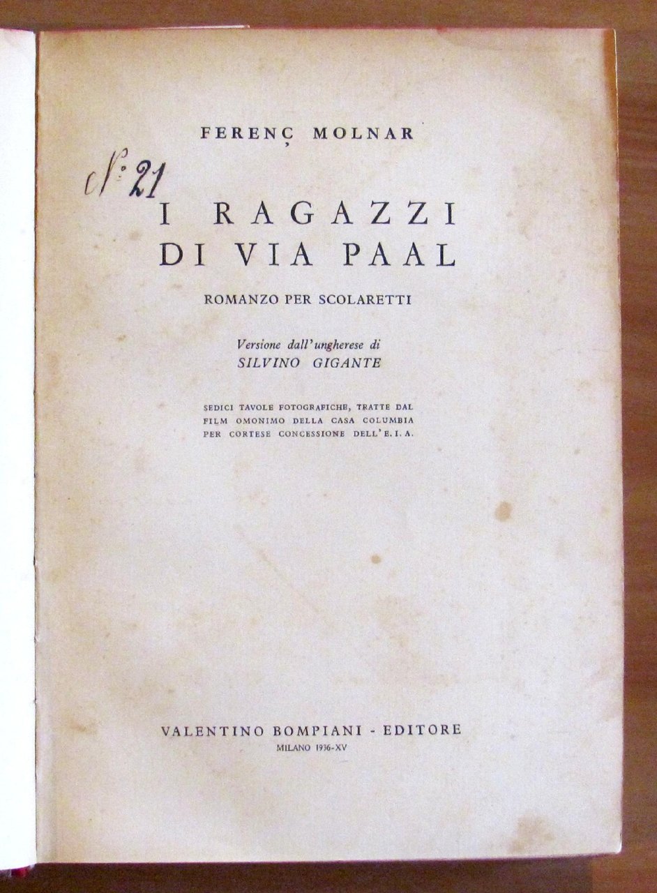 16 tavole fotografiche, ante-retro, tratte dal Film omonimo della Columbia per concessione dell'E.I.A. Editore Bompiani - Milano, 1936. Cartonato editoriale con dorso in tela originale. Dedica del tempo all'antiporta e leggero allentamento della cerniera anteriore all'occhietto. Lievi fioriture del tempo alle pagine. 17,5x24,5; pp.221. Raro, Buonissimo stato. , Molto buono (Very Good)