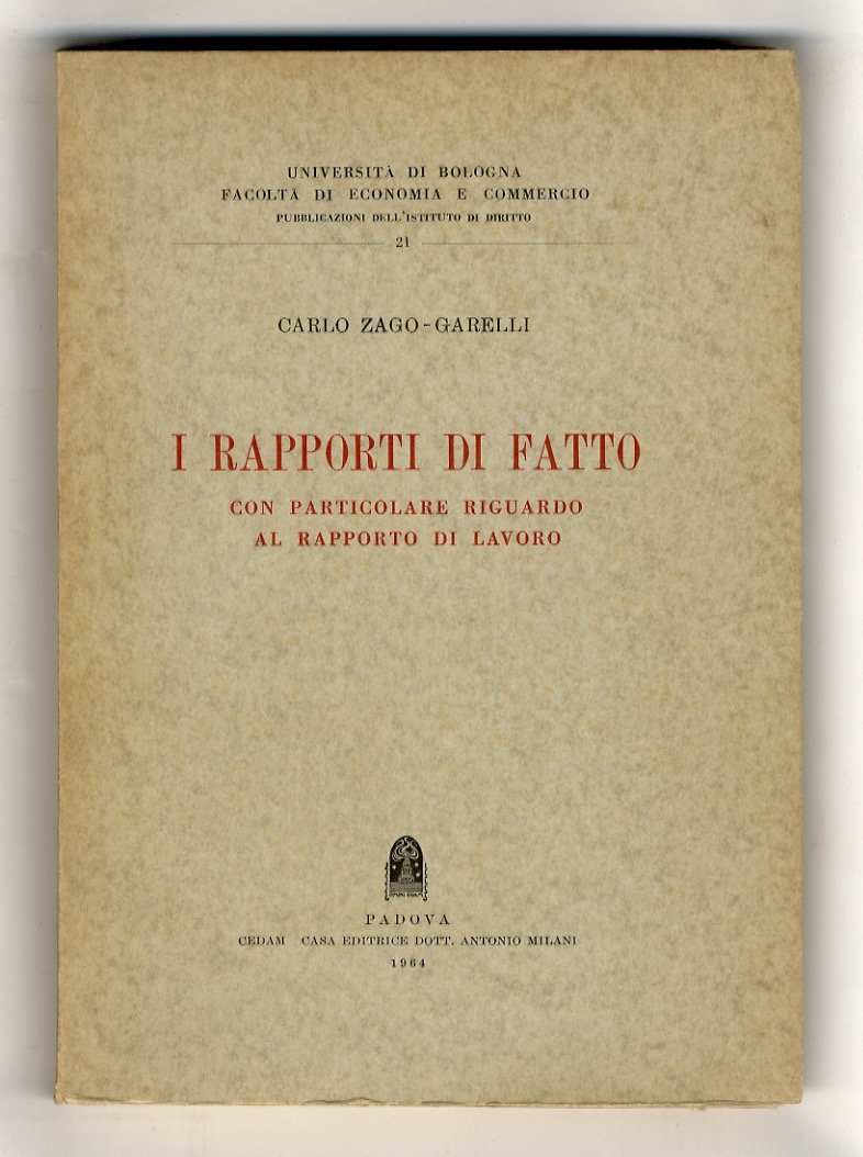 Padova, CEDAM, 1964, in-8, br. editoriale, pp. 247, [1]. Ottimo esemplare, intonso.
