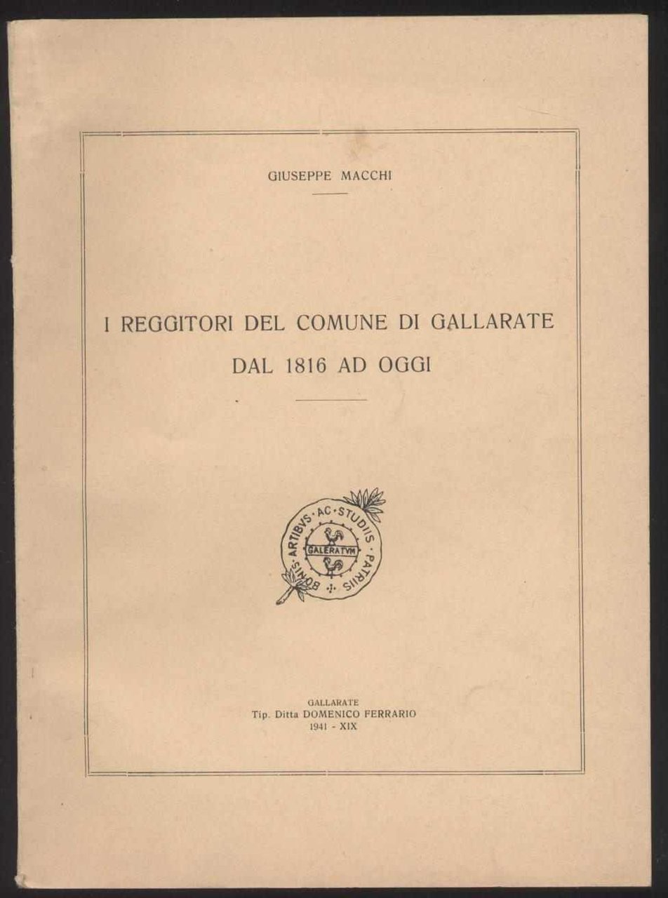 I reggitori del comune di Gallarate dal 1816 ad oggi (1941)