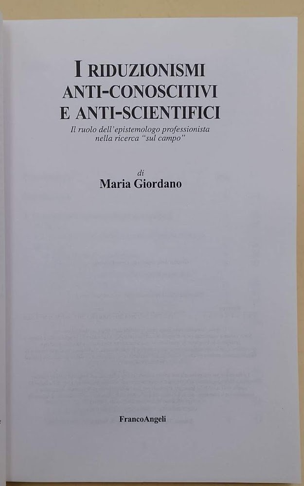 In 8', br.ed. , pp.246. ; Il ruolo dell'epistemologia professionista nella ricerca"sul campo"; volume in ottimo stato, minimi segni del tempo. ***Due to bureaucratic reasons, books dated over 70 years old cannot be immediately exported, please contact us before placing the order.***