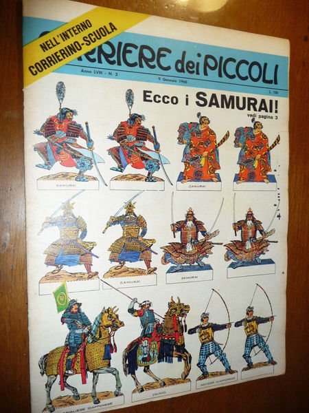 DESCRIZIONE: Corriere dei Piccoli 1966 n. 2 in 4°. Numero del C.d.P. con soldatini in cop. di Samurai nelle varie tenute. CONDIZIONI: Buone, bella rivista con normali segni d'uso ma fresca, assente l'inserto scolastico previsto all'interno, macchie di pennarello in cop. PESO / WEIGHT: 200 gr. without package