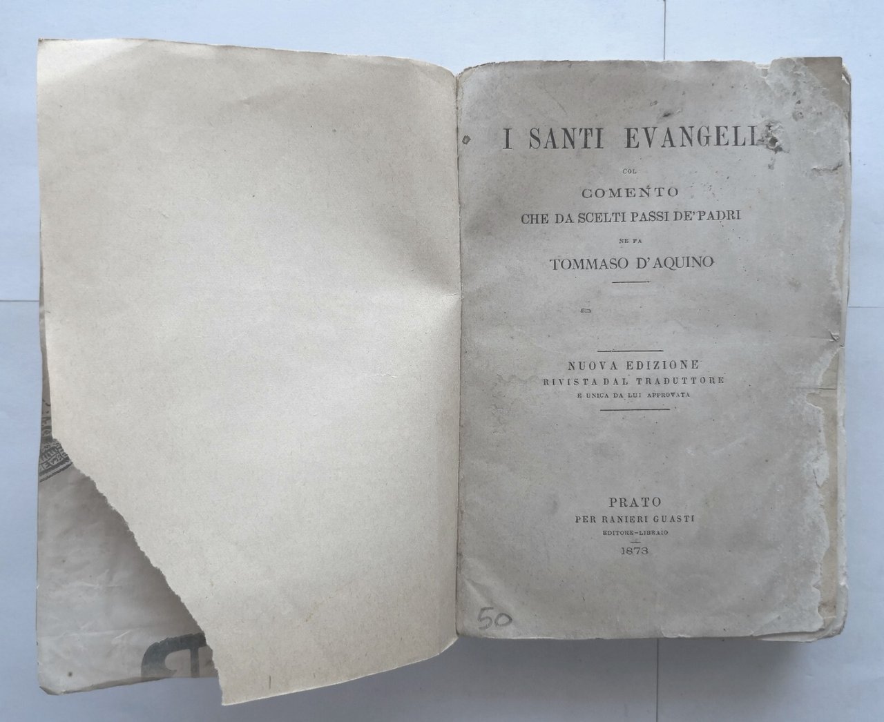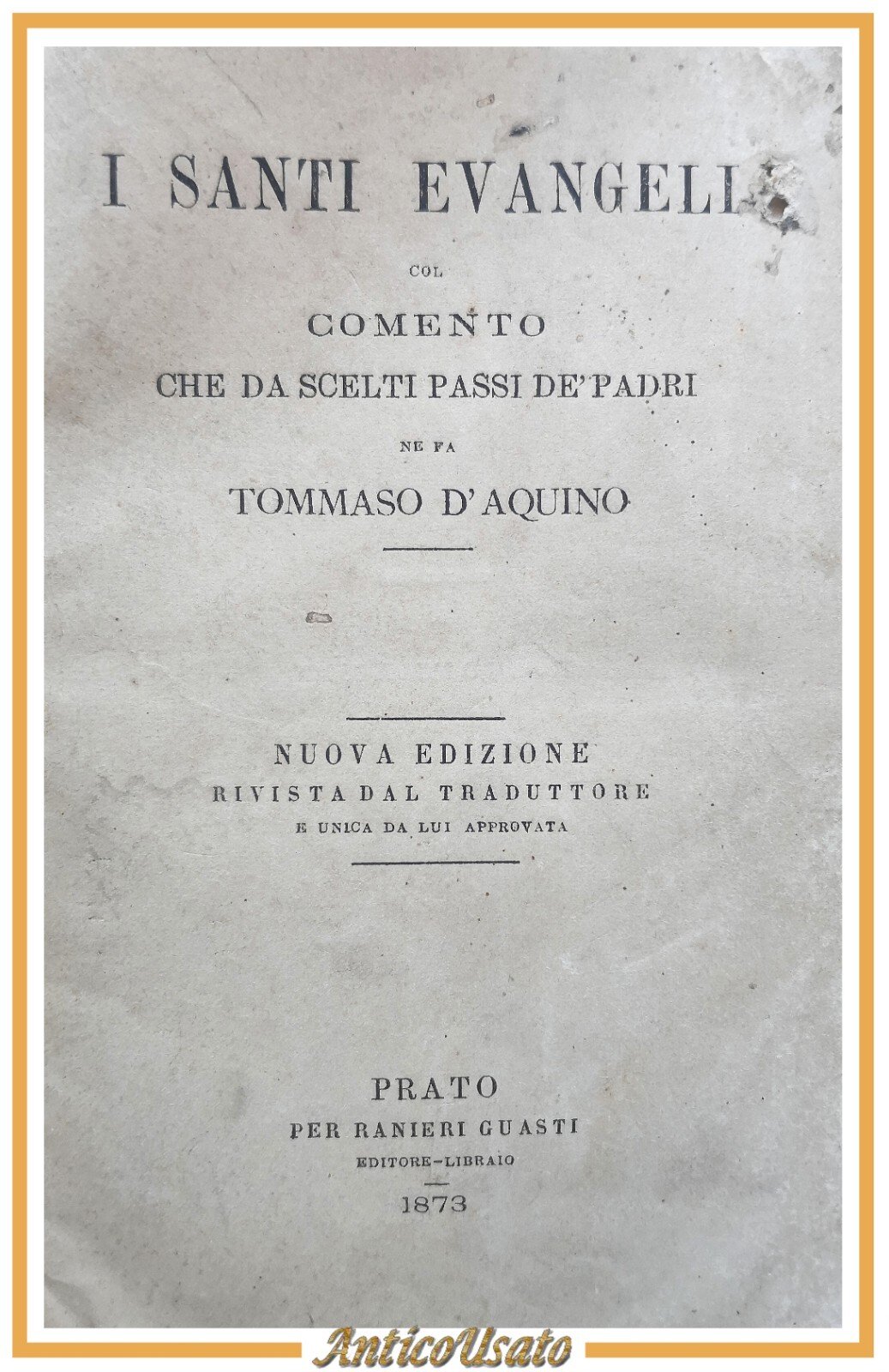 I SANTI EVANGELI col commento di Tommaso D'Aquino 1873 Guasti Libro antico chies