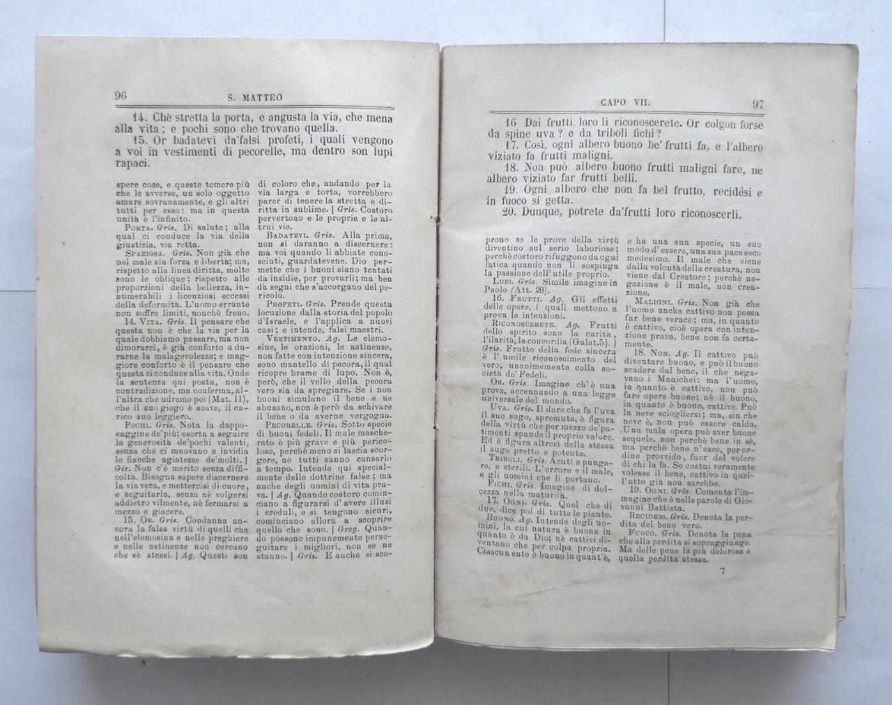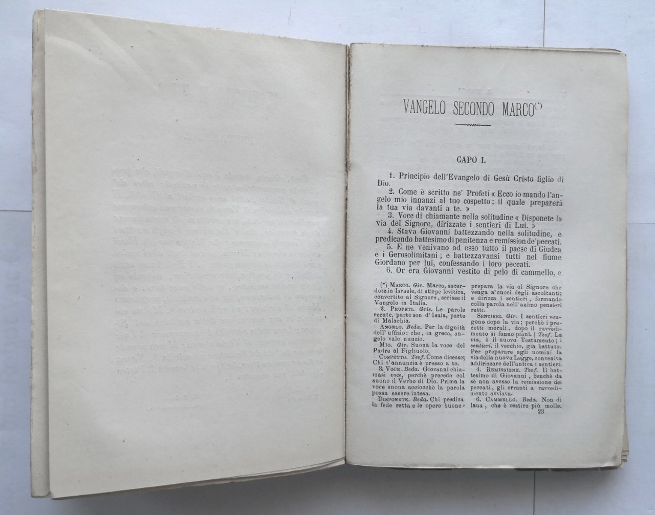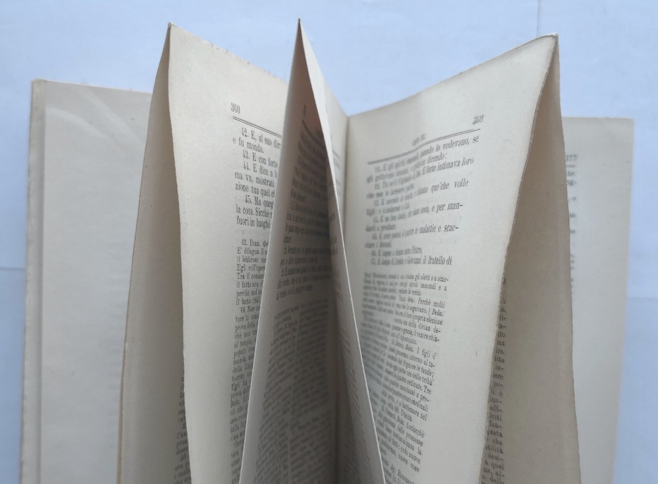 Prato per Ranieri Guasti, 1873. 486 pagine. Copertina in carta grezza muta. Stato di conservazione: buono (pagine normalmente ingiallite, brutta copertina ottenuta con carta da imballaggio e mancante del piatto posteriore, angolino mancante alla prima pagina bianca ma pagine ancora intonse) Libro antico religione chiesa cristiana nuovo testamento