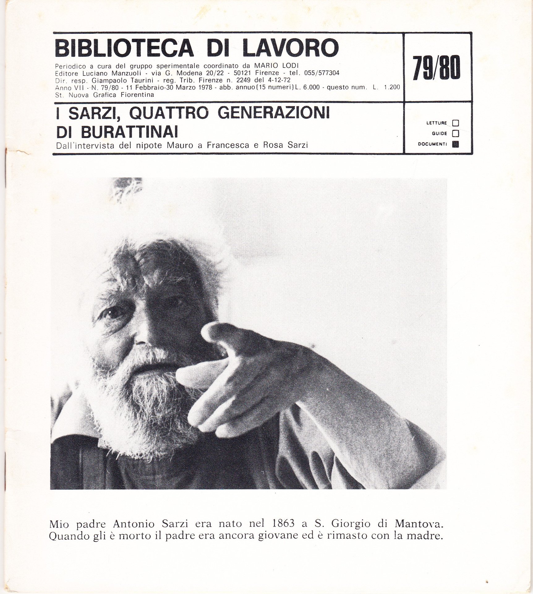 I Sarzi, quattro generazioni di burattinai. Intervista del nipote Mauro a Francesca e Rosa Sarzi