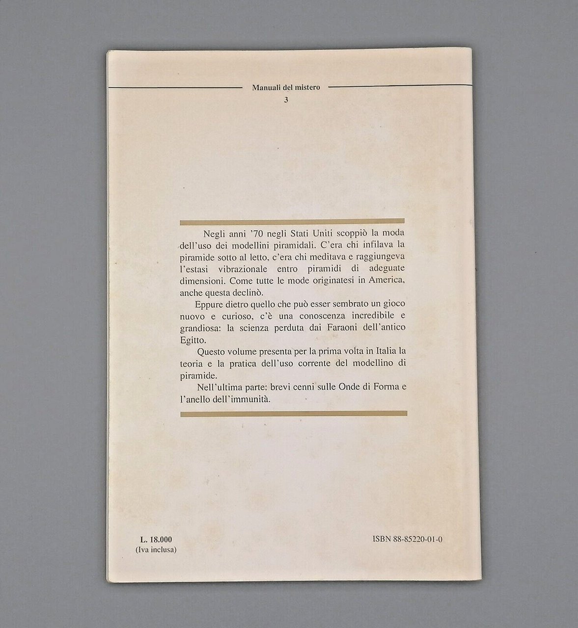 I segreti dell'antico Egitto. Nozioni teorico-pratiche per l'uso del modellino di piramidedi Massimo FrisariEditore: Sarva Data di Pubblicazione: 1990 EAN: 9788885220133 ISBN: 8885220134 Pagine: 80 1H-7-8 Descrizione Nozioni teorico-pratiche per l'uso del modellino di piramide Condizioni del libro Buone condizioni a parte alcuni sporadici segni a matita