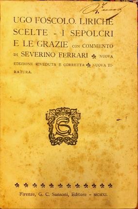 Liriche scelte con commento di Severino Ferrari. Nuova edizione riveduta e corretta. Nuova tiratura. In 16° (cm 19,7 x 14), pp. [XIII] + 154. Leg. mezza tela con angoli piatti cart. blu. Dorso marrone muto. Segni di consunzione ai margini e alle cuffie. Tagli e pagine bruniti. Legatura lievemente stanca. Gore al frontespizio. Rare macchie alle pagine. Discrete condizioni.