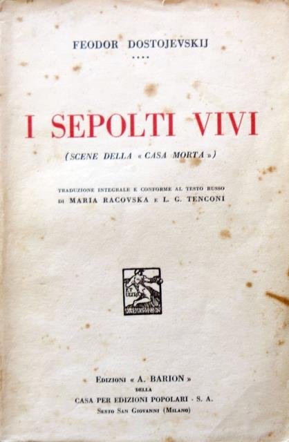 Traduzione integrale e conforme al testo russo di Maria Racovska e L. G. Tenconi. Edizioni A. Barion della Casa per Edizioni Popolari, Sesto San Giovanni (Milano), 1933 – X. In 8vo, pp. 396 + 1 (di Indice), bross. edit. in carta. Feodor Dostojevskij (1821 - 1881). La prima edizione dell'opera venne pubblicata nel 1861. Alcune ossidazioni alla brossura, buona conservazione.