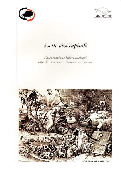 I sette vizi capitali. L'Associazione Liberi Incisori alla Fondazione Il Bisonte di Firenze, prima edizione gennaio 2013, pp. 47, formato 17 x 24.Copertina morbida illustrata (Pieter Bruegel il Vecchio, 1558).Presentazione di Rodolfo Ceccotti e Simone Guaita. All'interno numerose tavole illustrate in b/n. Tiratura 500 copie.Ottime condizioni.