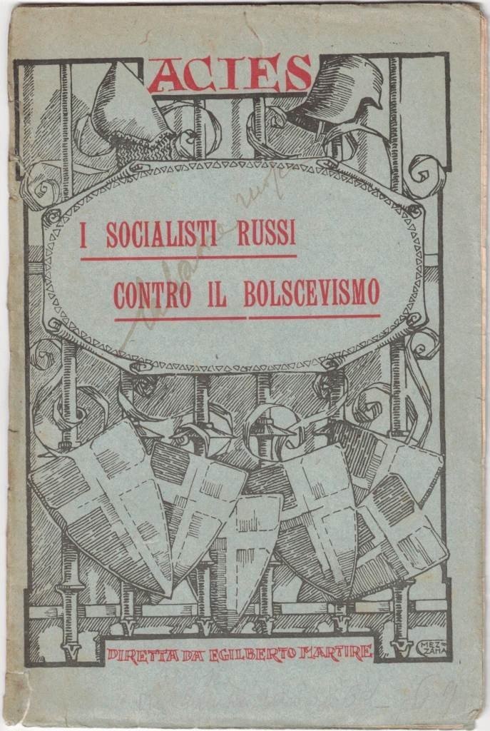 I socialisti russi contro il bolscevismo. Documenti Testimonianze, Libreria Editrice Religiosa Francesco Ferrari, Roma 1920, pp. 43, cm 19, br. ed. Collana Acies, diretta da Egilberto Martire. Firma d’appartenenza a prima di copertina e frontespizio. Tracce d’uso, alcune sottolineature e alcune annotazioni a lapis con grafia minuta, ma nel complesso ancora buona copia. Non comune.