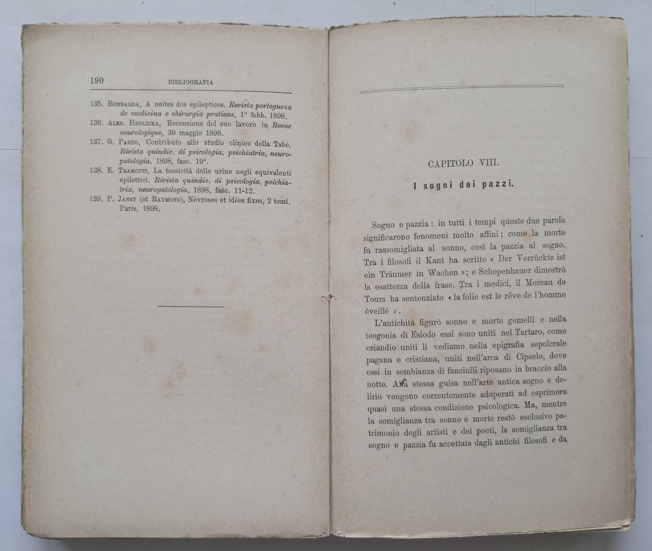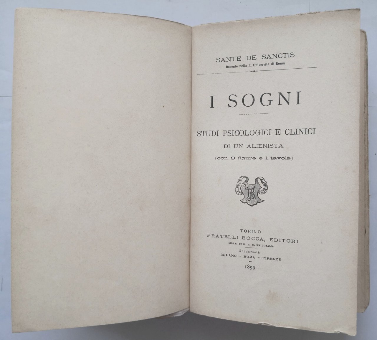 I SOGNI di Sante De Sanctis 1899 Bocca studi psicologici e clinici libro antico