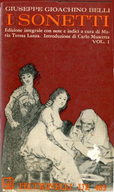 4 v. (XCV, 2500 p.) ; 18 x 11 cm. Universale economica. Biblioteca di classici italiani. I "Sonetti romaneschi" sono una raccolta di sonetti scritti in dialetto romanesco da Giuseppe Gioachino Belli (1791-1863), una delle produzioni più corpose di poesie durante il 19. dato che comprende ben 2279 sonetti. Questa edizione integrale è curata con le note e gli indici da Maria Teresa Lanza (1925-2017) filologa di fama internazionale mentre l'introduzione è del critico letterario e poeta Carlo Muscetta (1912-2004). Brossura editoriale, coperta in cartoncino flessibile colorato. Qualche segno del tempo al dorso dei volumi e ai profili delle copertine, leggero ingiallimento della carta per il resto esemplari in buono stato. Codice libreria 1391.