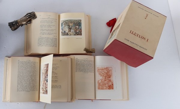 3 Volumi (mm.200x135), pagg.CXCI-3311 consecutive-indici. Legature rigide editoriali con sovraccoperte illustrate. Conservato in cofanetto editoriale anch’esso illustrato. Bella edizione a cura di Giorgio Vigolo con 120 illustrazioni delle quali 24 a colori. Molto ben conservato, solo qualche usuale segno del tempo all’esterno ed una dedica manoscritta di passato possessore ad un foglio bianco iniziale. Terza edizione dell’agosto 1961.