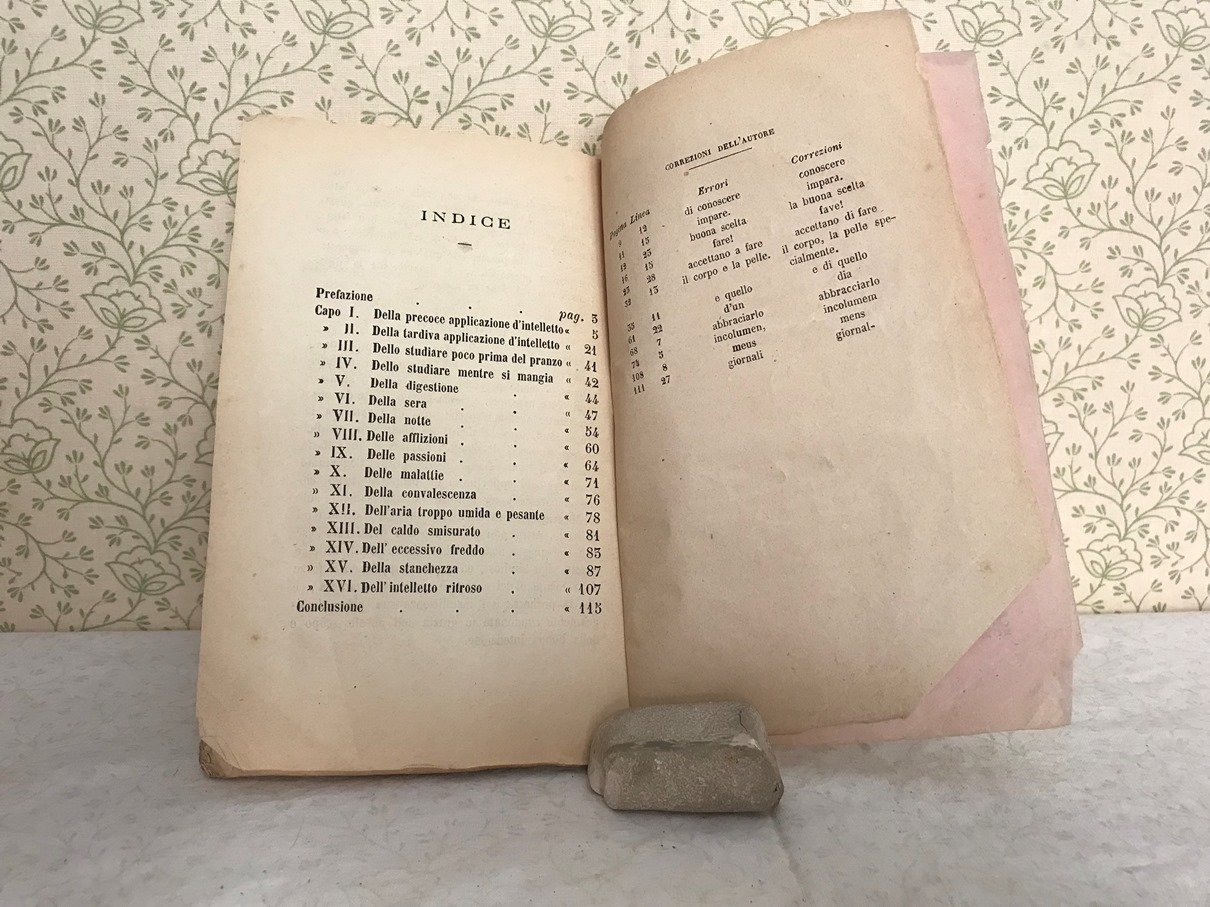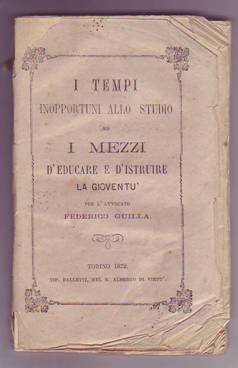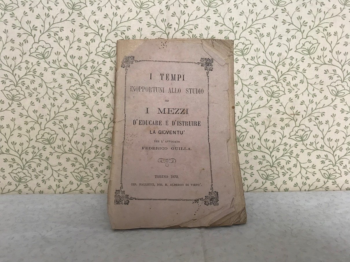 Volume in 16, brossura editoriale, frontespizio, 115 pp., indice. Interessante e particolare saggio che suggerisce parecchi mezzi e situazioni che influiscono vantaggiosamente sulleducazione e sullo studio per un maggior profitto, tesi avvalorate da brani di autorevoli scrittori classici. Orecchie e mende d'uso, ma in buono stato.