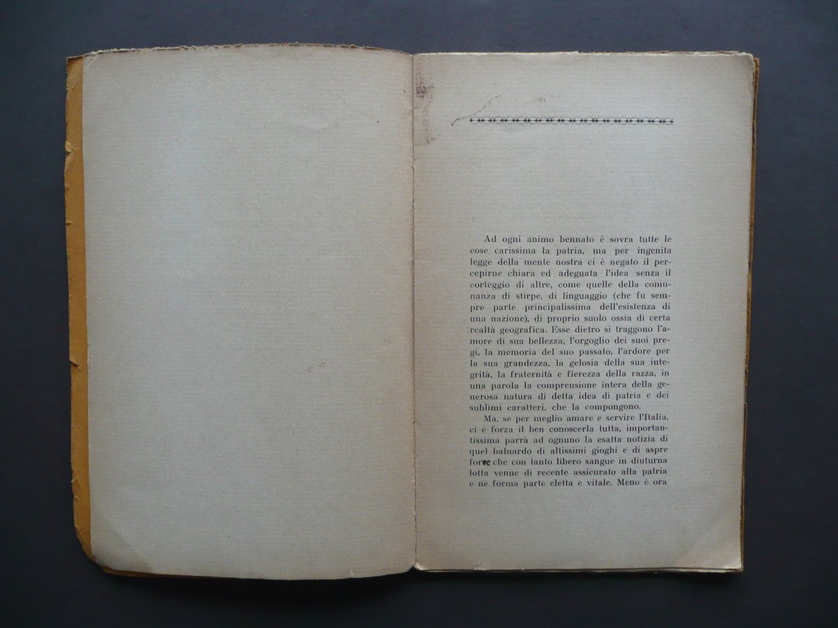 Ten. Francesco Arnholt di Danneburg, I termini sacri della Rezia Italica Stab. Tip. G. Ferraguti, Modena 1928, cm 21x14, pp. 44, brossura ed. Condizioni di conservazione Esemplare in buone condizioni con tracce d'uso, margini e angoli delle brossure con qualche piccolo strappetto e una minuscola mancanza, margine sup. della br. ant. con lievissime e poco visibili ombre di gore, una delle quali interessa in misura minima il margine sup. di qualche pagina senza coinvolgere il testo; cuffia inf. con con uno strappetto di alcuni cm. Interni buoni, margine int. del frontespizio con uno strappetto di alcuni cm alla parte inf., qualche pagina con un paio di piccole correzioni d'epoca a penna. OPEB.2407 N