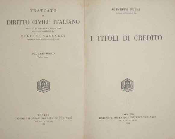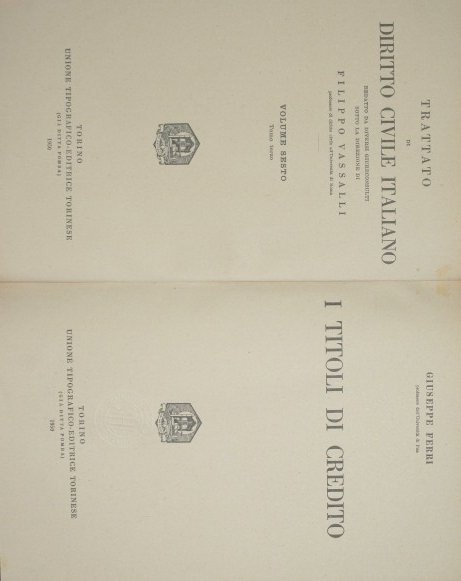 Collana Trattato di Diritto Civile italiano. Vol. VI, tomo terzo - in 8° - pp.VIII + 178 - Tela - Tasselli con titoli in oro al dorso - Timbro in antiporta