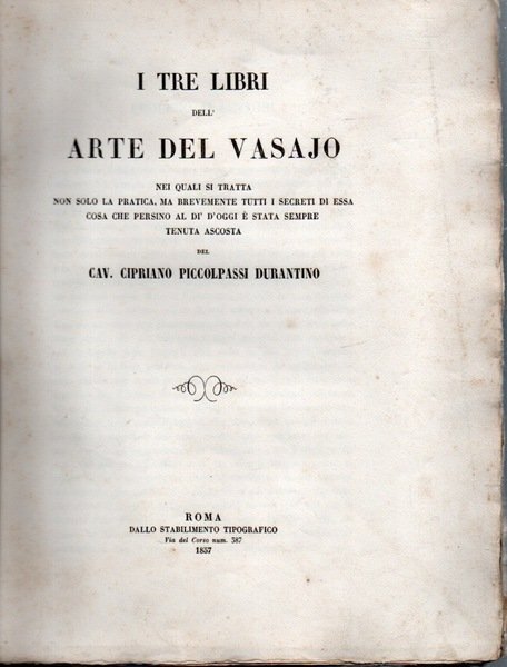 I tre libri dell'arte del vasajo nei quali si tratta non solo la pratica, ma brevemente tutti i segreti di essa