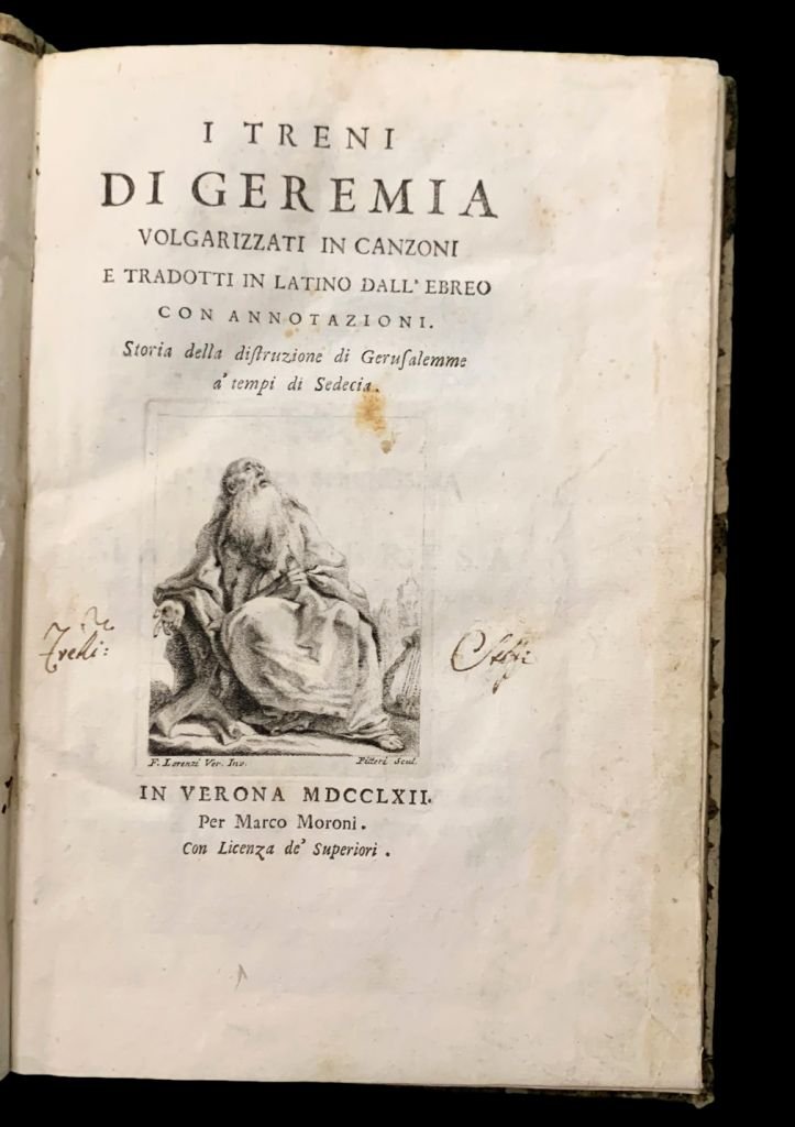 I treni di Geremia volgarizzati in canzoni e tradotti in latino dall'ebreo con annotazioni. Storia della distruzione di Gerusalemme a'tempi di Sedecia.
