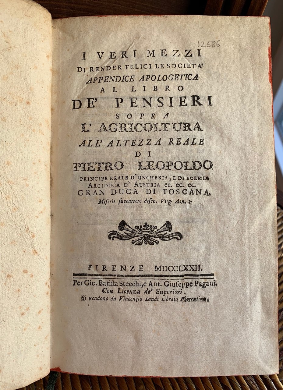 I veri mezzi di render felici le società, appendice apologetica al libro de' Pensieri sopra l'agricoltura. All'altezza reale di Pietro Leopoldo
