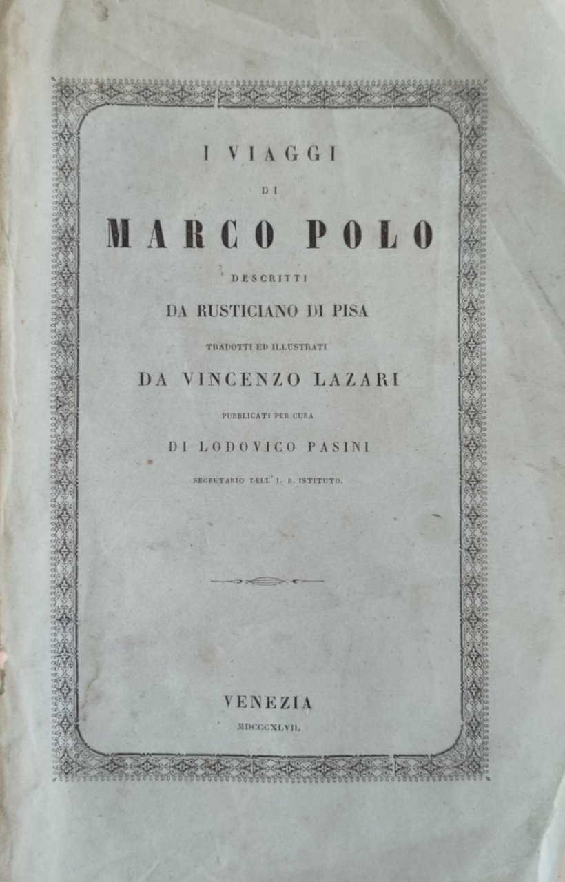 I VIAGGI DI MARCO POLO DESCRITTI DA RUSTICIANO DI PISA TRADOTTI E ILLUSTRATI DA VINCENZO LAZARI