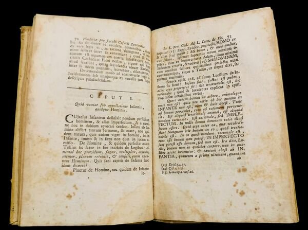 In 4° piccolo (21x13,5 cm); 136 pp. Legatura coeva in piena pergamena rigida con titolo impresso in oro al dorso. Un leggerissimo alone al margine esterno bianco, qualche macchiolina di foxing, il tutto dovuta dalla qualità della carta utilizzata. Prima ed unica rara edizione di questo importante studio di diritto romano che riporta diversi commenti, anche inediti, agli studi del grande giurista francese Jacques Cujas, italianizzato in Jacopo Cuiacio (Tolosa, 1522 Bourges, 1590), inerente alla Lex Corneliam de Sicariis nota anche come Lex Cornelia Sullæ de sicariis et veneficis legge proposta nell'81 a.C. dal dittatore Silla per ridisciplinare la materia del crìmen homicidii, crimine variamente disciplinato in diritto romano (fino al II sec. a.C. veniva ancora chiamato parricìdium). L'opera racoglie scritti di Gerard Noodt, Jacob Gothofredi, Bernanrdo Tanusio ed il giurista napoletano Domenico Albanesi. Opera molto rara, stampata a Napoli dall'editore, De Simone. Molto raro. Rif. Bibl.: IT\ICCU\RMLE\024353.