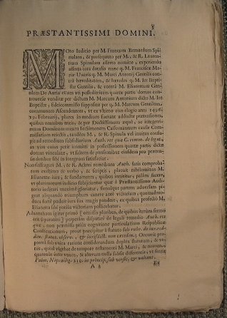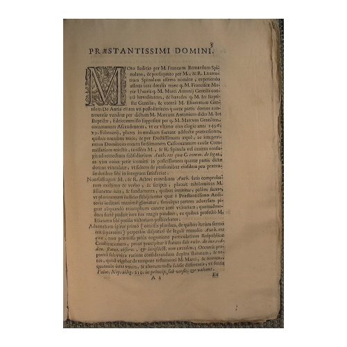 Text. In Auth. De resist., et ea quae parit in II. Mens. Post. Mortem viri S. Quamobrem, undè sumpta est Auth. Resquae C. comm. de legat. - in 4° - pp.18 - - Marca al frontespizio, capolettera xilografico