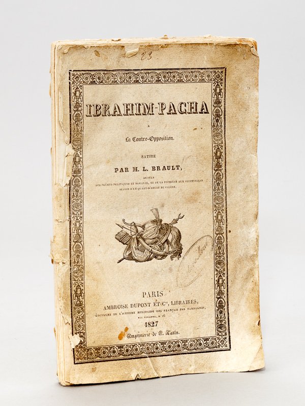 1 brochure in-8, Ambroise Dupont et Cie, Paris, 1827, 106 pp. Rare exemplaire de l'édition originale de cette brochure satirique. Etat satisfaisant (couv. abîmée, qq. lég. mouill.)