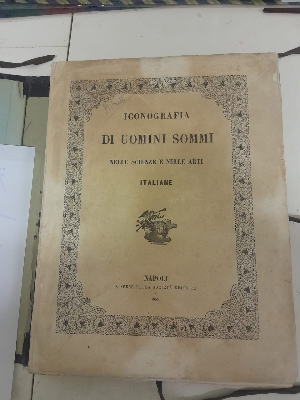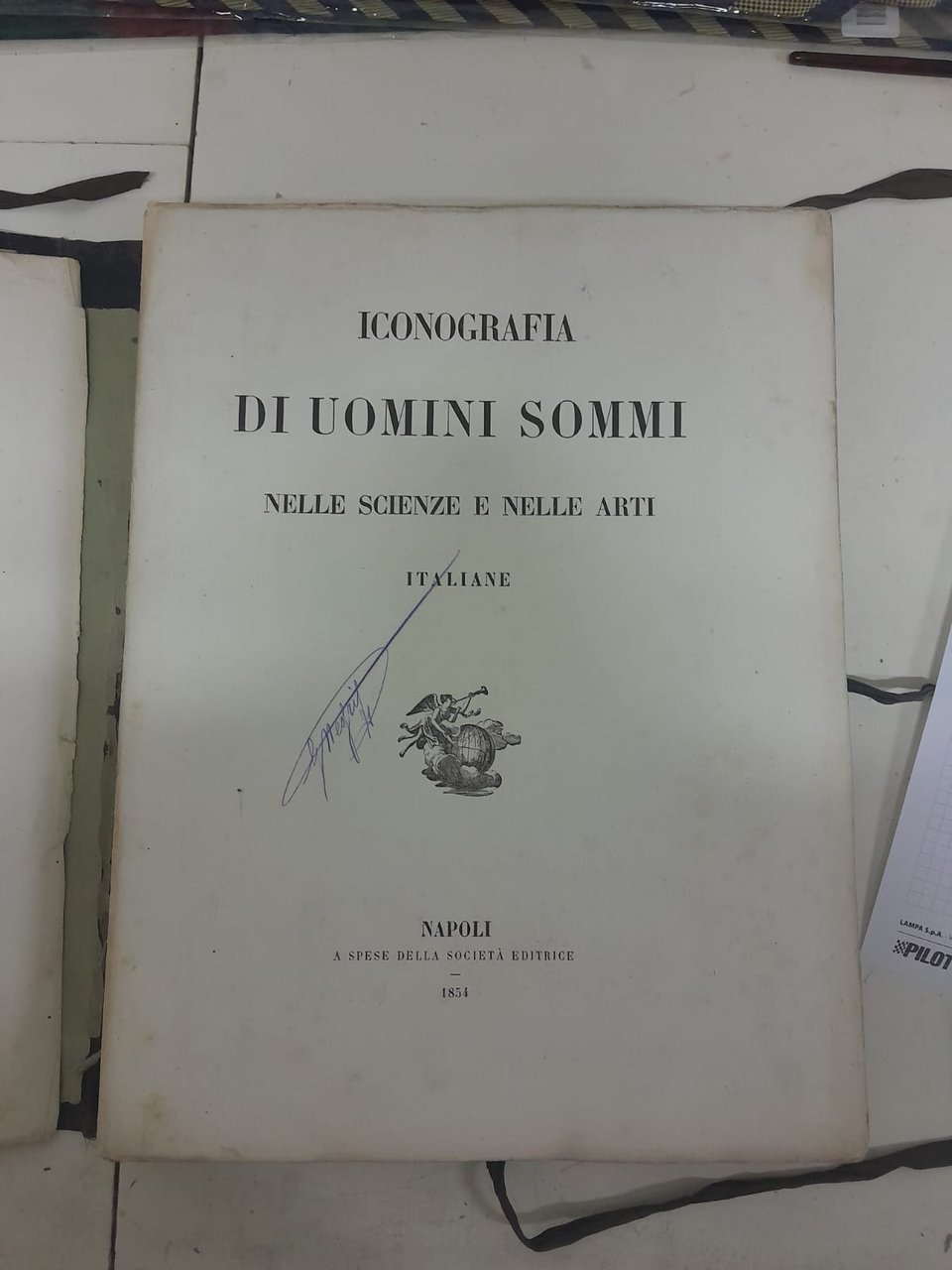 Cartella in folio: 112 pagine contenenti 12 pagine di frontespizio e biografie degli uomini effigiati, 100 fogli con ritratti in incisione su rame eseguiti da autori diversi.
