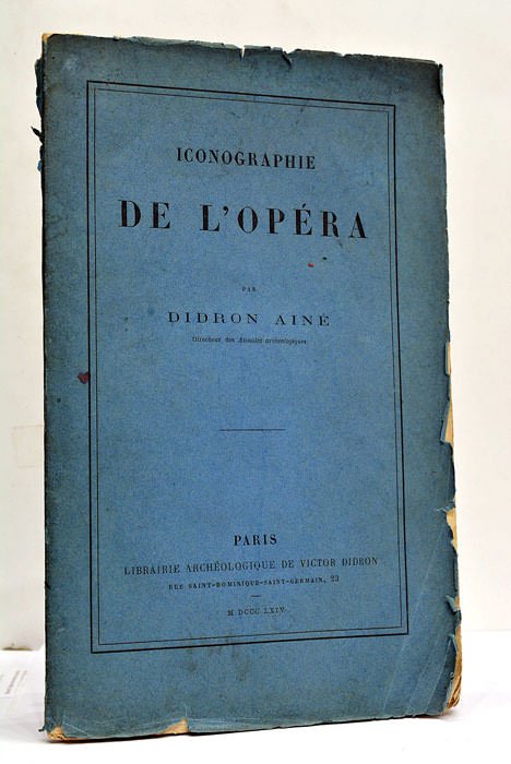 56 pages. (22x14 Cm). Broché. Couverture imprimée. Petits manques et accrocs. Quelques taches et salissures. Description des richesses artistiques de l’Opéra, qui est "le temple de l’art comme la cathédrale est le temple de la religion". L’auteur Adolphe Naopléon Didron était un archéologue et érudit auquel on doit "d’avoir avec Lassus et Viollet-le-Duc, reconstitué les principes de notre vieil art national". Quelques rousseurs éparses. Traces de plis. Exemplaire partiellement non-coupé.