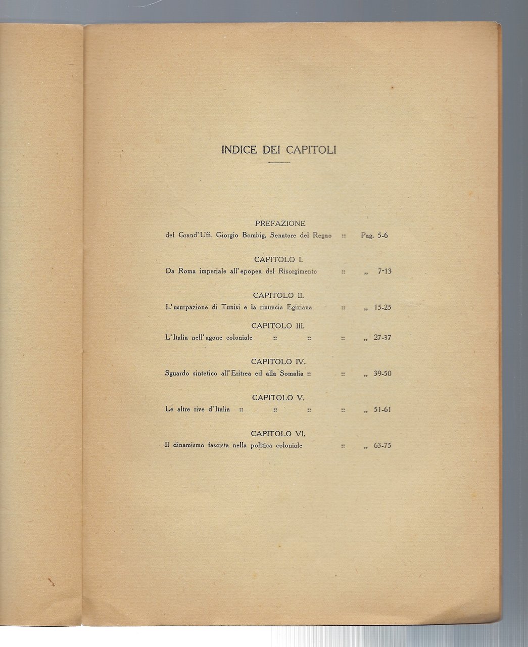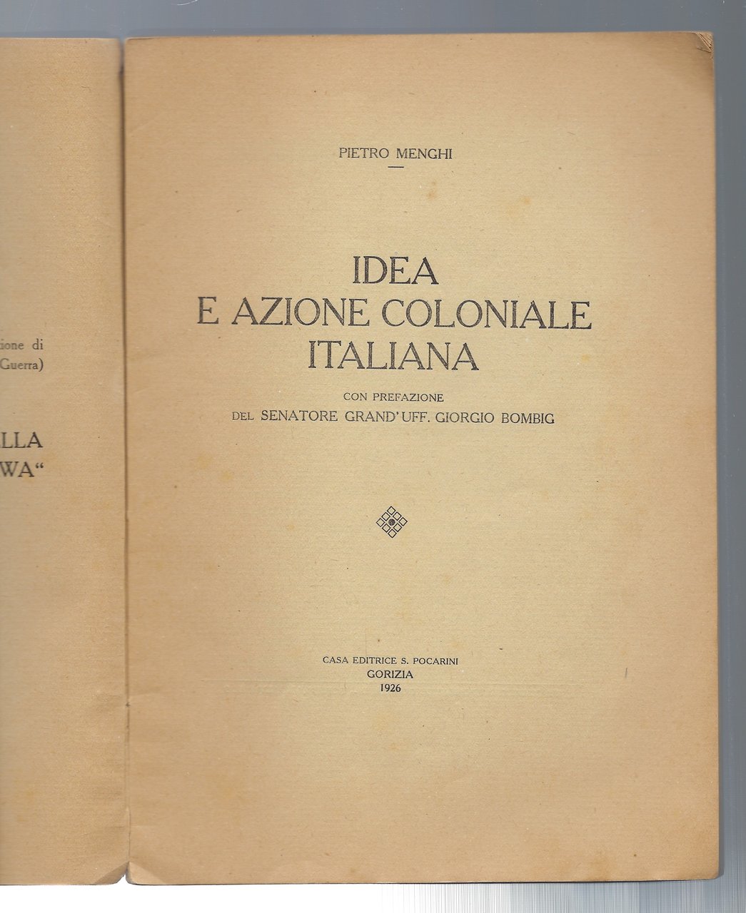 Idea e azione coloniale italiana. Con prefazione del Senatore Grand'Uff. Giorgio Bombig.
