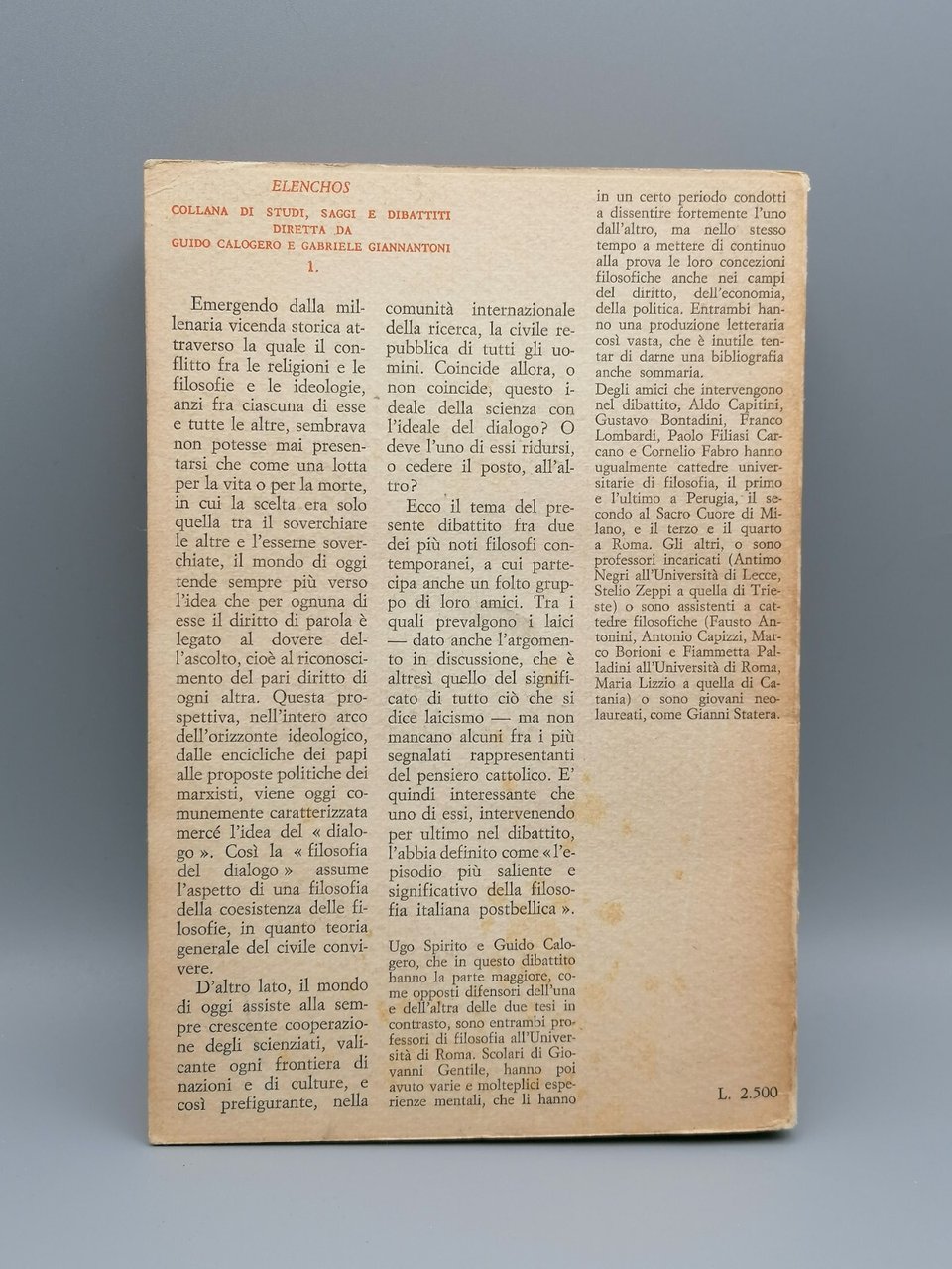 Ideale Del Dialogo o Ideale Della Scienza? Libro Spirito Calogero Filosofia 1966