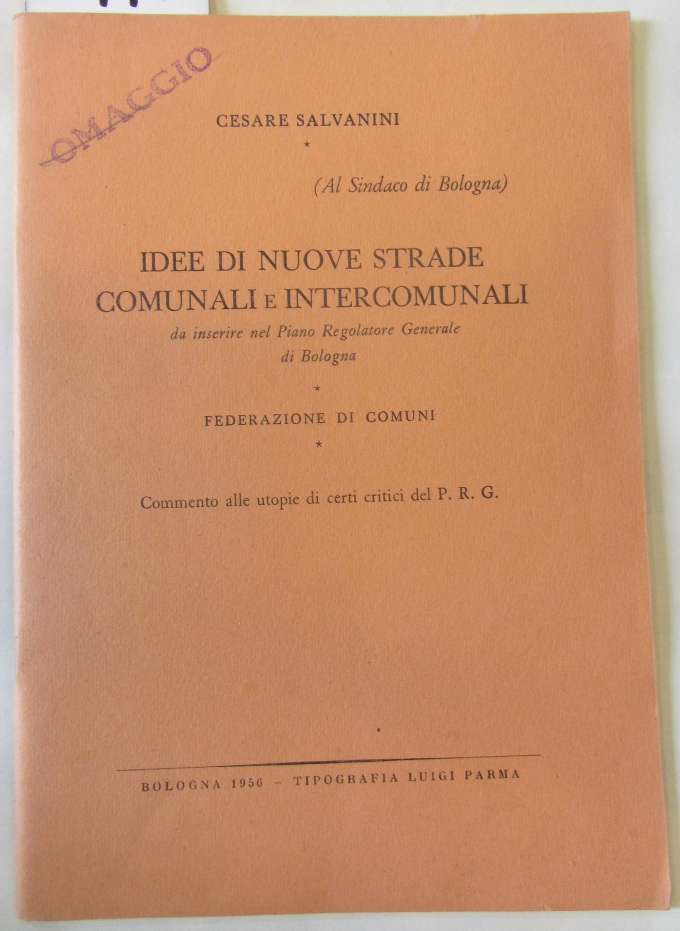 IDEE DI NUOVE STRADE COMUNALI E INTERCOMUNALI: da inserire nel Piano Regolatore Generale di Bologna. FEDERAZIONE DEI COMUNI. COMMENTO ALLE UTOPIE DI CERTI CRITICI DEL P.R.G.