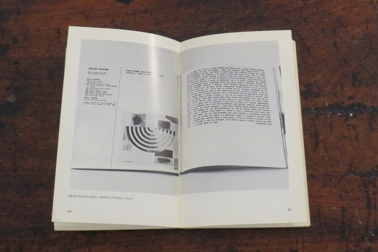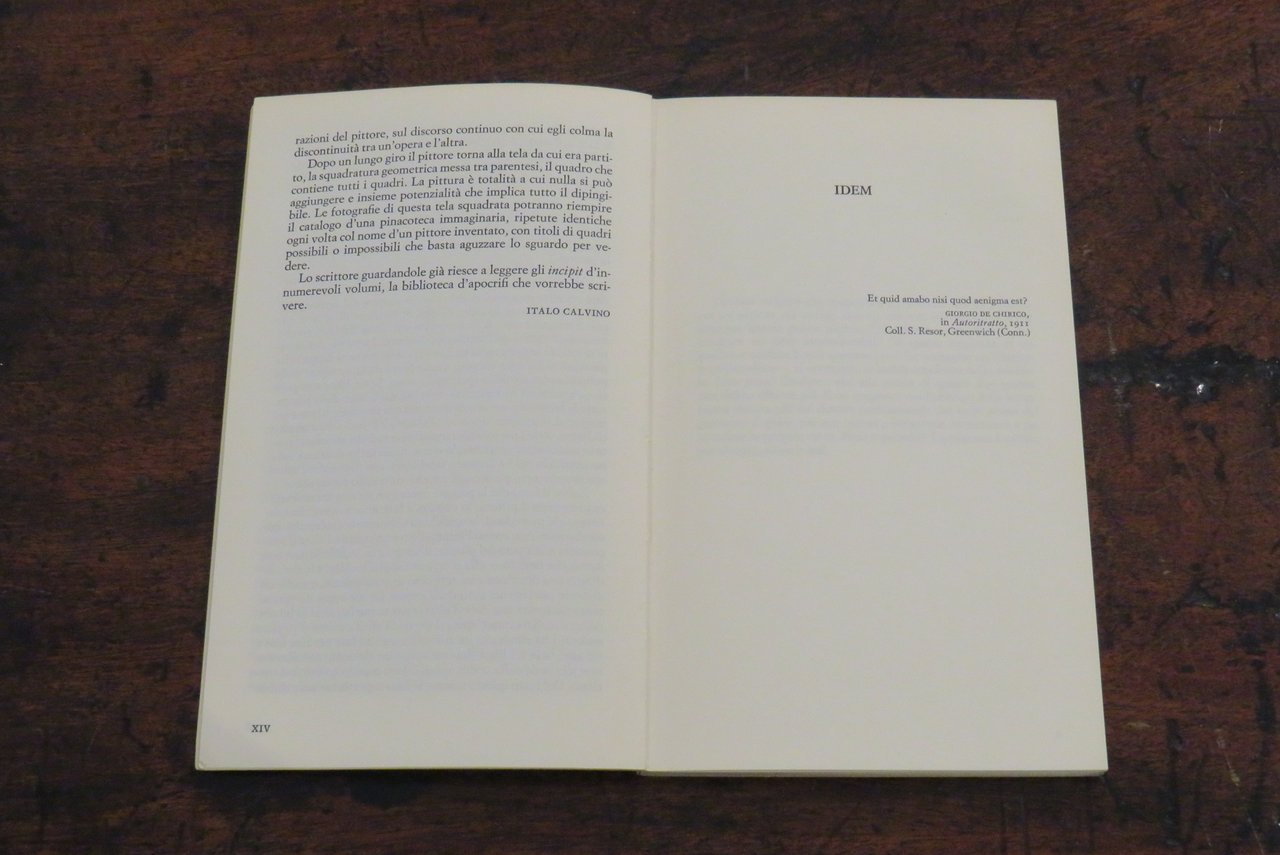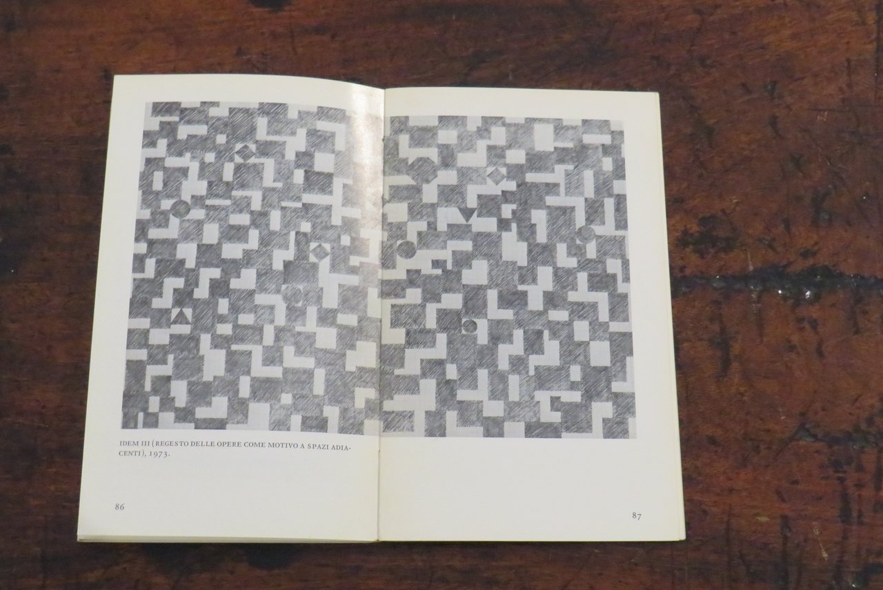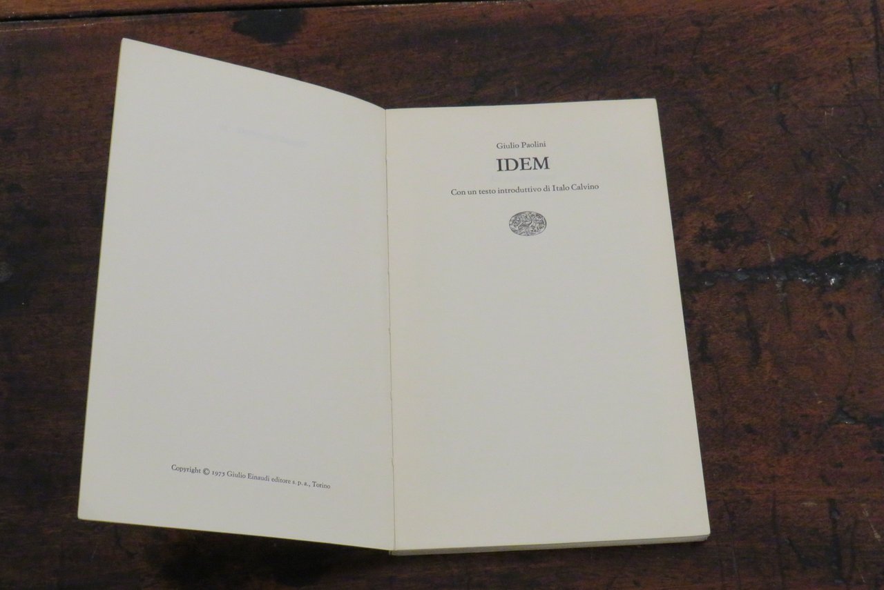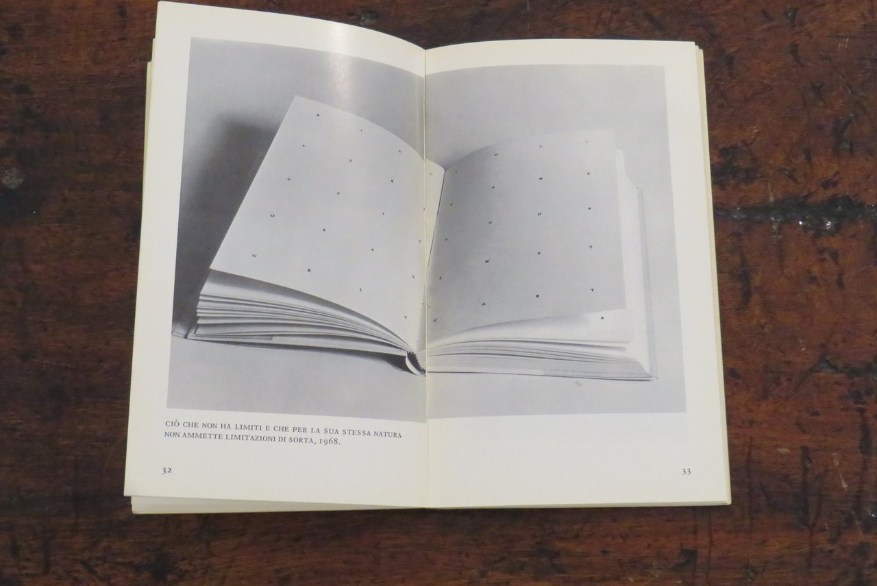 Torino, Giulio Einaudi editore, 1975. In -8 (mm. 120,5x200,5), pp. VII-XIV, 114, con numerose illustrazioni in nero nel testo di lavori di Paolini. Brossura editoriale illustrata in nero al piatto anteriore, con titoli al dorso. Prestigioso testo introduttivo di Italo Calvino. Antologia di scritti e interviste rilasciate da Giulio Paolini nel periodo 1963 – 1974. Collana "Einaudi Letteratura" N. 39, progettata da Paolo Fossati insieme a Giulio Bollati. Dal piatto posteriore della brossura: "Tutto il lavoro di Giulio Paolini parte dal presupposto che la pittura sia un tutto compiuto e definitivo, un edificio a cui egli non pretende d’aggiungere nulla. In un’epoca in cui è facile fare gli iconoclasti, egli si contraddistingue per il rispetto che porta alla pittura, per la fedeltà al mestiere di pittore nei suoi più umili elementi, per la modestia e insieme per la sicurezza con cui allinea nuove opere nel margine strettissimo che resta a un’attività creativa ridotta all’analisi di se stessa", Italo Calvino. Prima edizione. Libro d’artista. Ottimo.