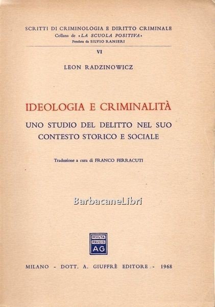 Stato di conservazione: BUONO, dorso leggermente segnato, firma di appartenenza al frontespizio, sottolineature e segni a matita a margine del testo (comunque leggibilissimo). Collana: La Scuola Positiva. Presentazione di Giuliano Vassalli. Introduzione di William C. Warren. Traduzione a cura di Franco Ferracuti