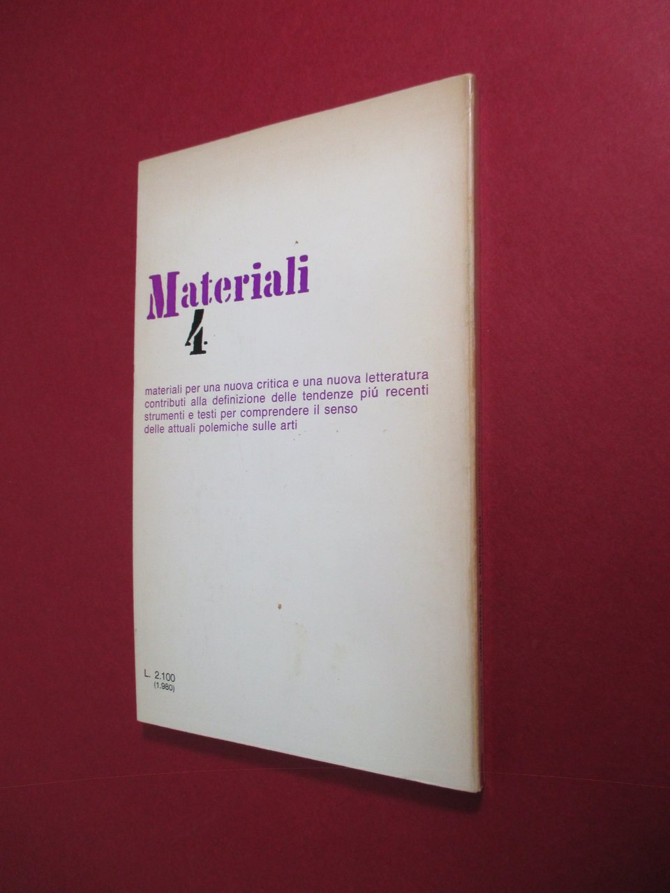 In – 8vo, brossura editoriale, pp. 137 ( 7 ). Nuova edizione ampliata. Collana “ Materiali “ vol. 4.