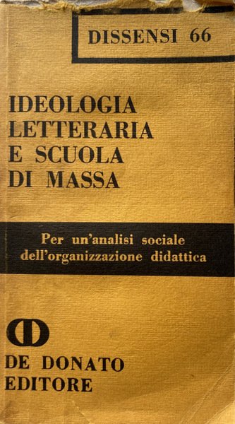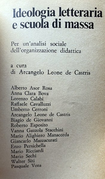 IDEOLOGIA LETTERARIA E SCUOLA DI MASSA. PER UN'ANALISI SOCIALE DELL'ORGANIZZAZIONE DIDATTICA. A CURA DI ARCANGELO LEONE DE CASTRIS