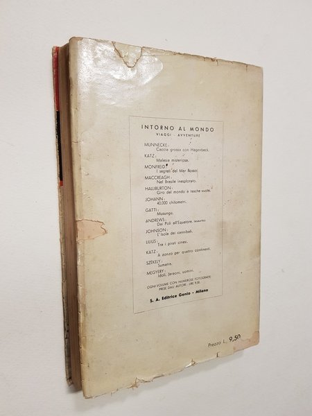 Traduzione di Filippo Faber.<BR>Intorno al Mondo. Viaggi - Avventure.<BR>In 8°; pp. 214 con 16 tavole in nero fuori testo; brossura editoriale con sovraccoperta illustrata; cucito.<BR>CONDIZIONI DISCRETE: consueta ingiallitura delle pagine (in alcuni casi brunitura) dovuta alla qualità della carta; alcune fioriture (in particolare sulle pagine di fronte alle illustrazioni); strappetti e mancanze ai margini della sovraccoperta, con riparazioni d'epoca al retro.<BR>