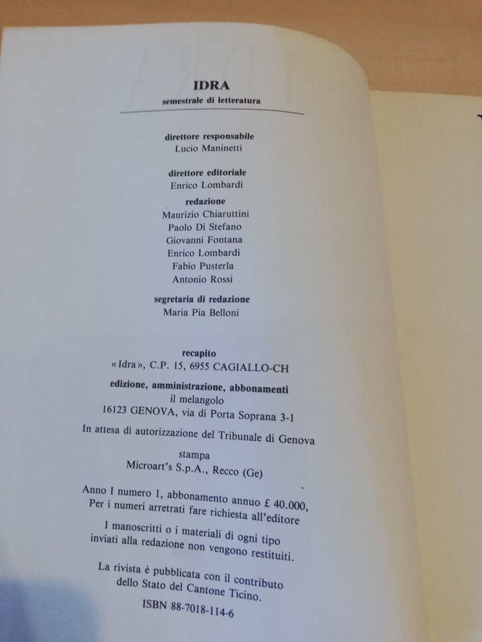 Idra, semestrale di letteratura, Il melangolo, anno 1 numero 1, 1990