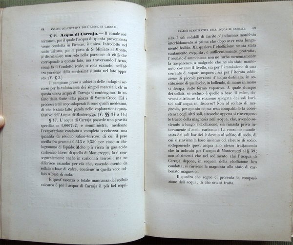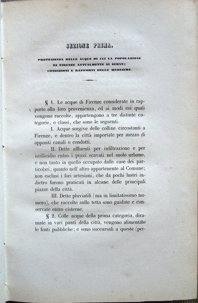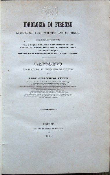 Idrologia di Firenze, desunta dai resultati dell'analisi chimica comparativamente istituita fra l'acqua potabile attualmente in uso presso la popolazione della ridetta città ed altra acqua con che viene proposto di farne la sostituzione
