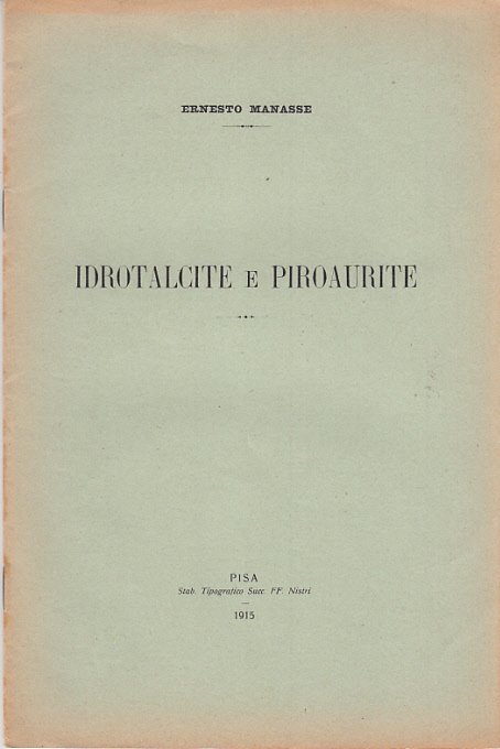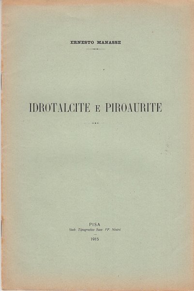 In-8 (Cm 26,5 x 18), pp. 15, brossura editoriale. Estratto dai processi verbali della Società Toscana di Scienze Naturali, Vol. XXIV adunanza del 14 Novrembre 1915. Lieve ingiallitura. MOLTO BUONO