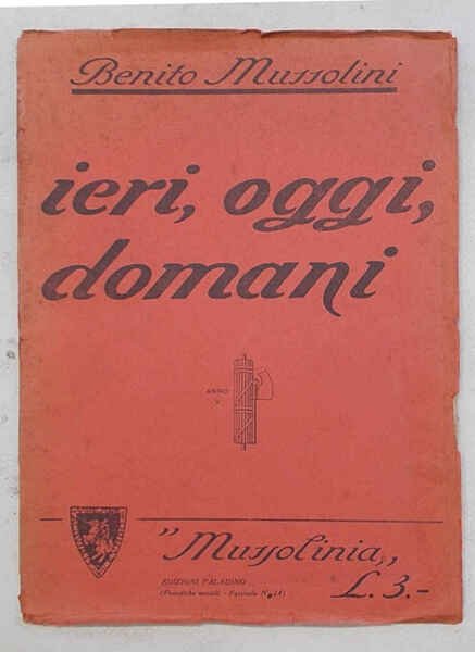 In 8° (cm. 24,5 x 17); pagg. 47; leggera cartonatura origin. illustr. Qualche alone al margine, ma molto buono. VG-. ** "Mussoliniana" biblioteca di propaganda fascista diretta da Franco Paladino, n. 24.